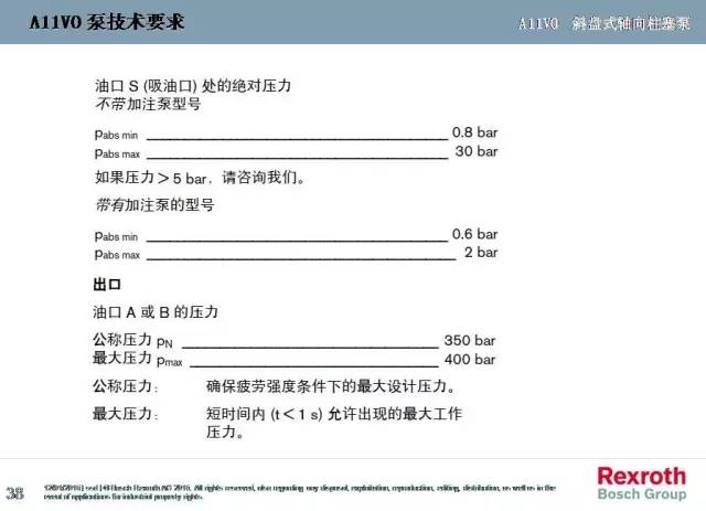 遵守?cái)?shù)據(jù)表中有關(guān)液壓油的溫度、粘度和清潔度的限制規(guī)定。